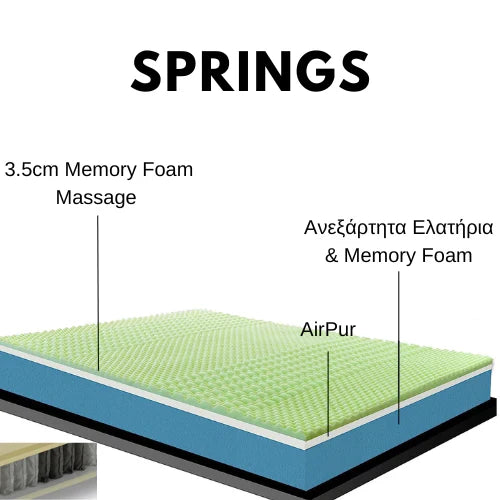 Το στρώμα έχει πυρήνα κατασκευασμένο από ανεξάρτητα ελατήρια. Κάθε ανεξάρτητο ελατήριο διεγείρεται ξεχωριστά από το βάρος του σώματος και εγγυάται ένα τέλειο καλωσόρισμα σε κάθε περιοχή. Το στρώμα Springs έχει 800 ελατήρια pocket στο μονό μέγεθος και 1600 σε διάσταση 160cm. Το στρώμα προσαρμόζεται τέλεια στο σώμα και συμβάλλει στη φυσική ευθυγράμμιση της σπονδυλικής στήλης για εργονομική στήριξη.